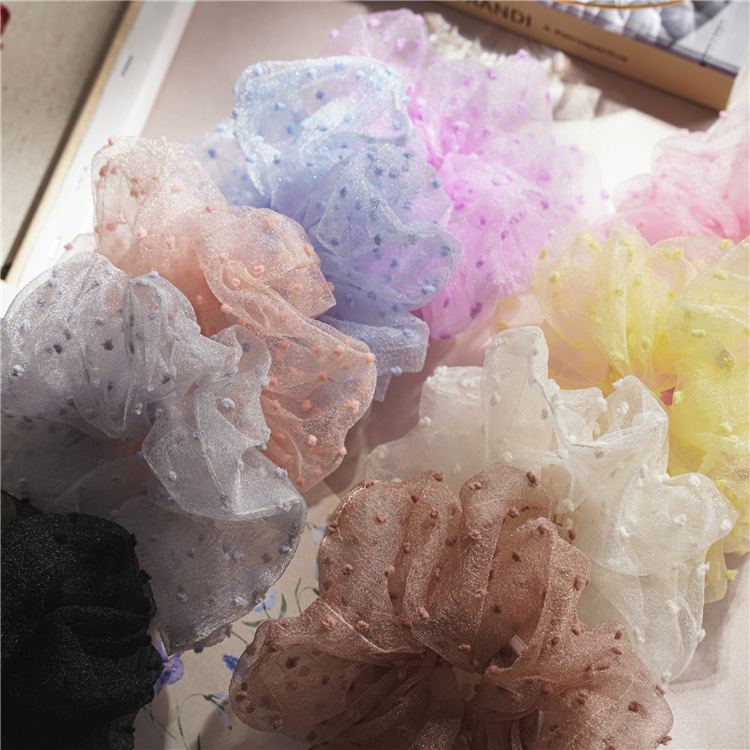 Summer net yarn hairball grenadine scrunchies bowel scroller ins wind girls pink red headwears Yiwu accessories